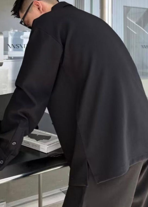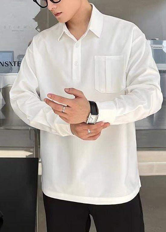 Polo homme en coton patchwork gris à poches uniques, automne EQ016