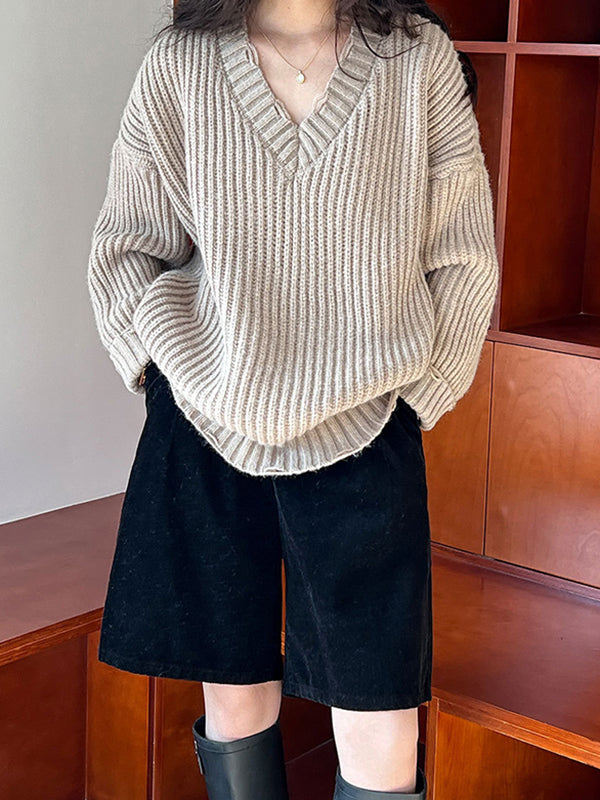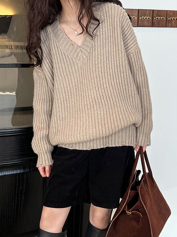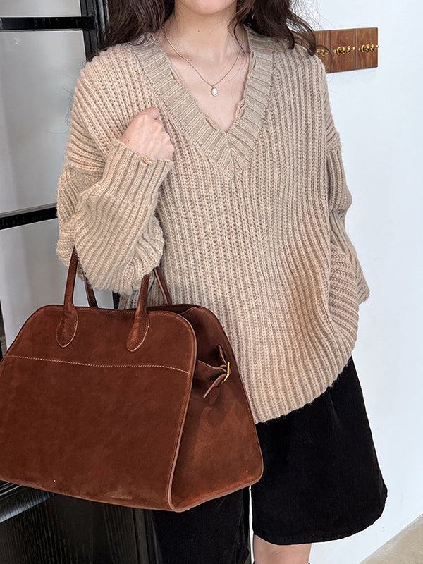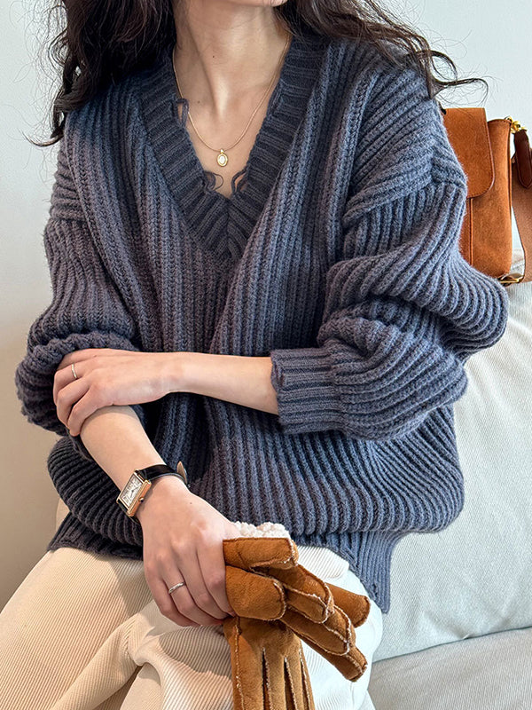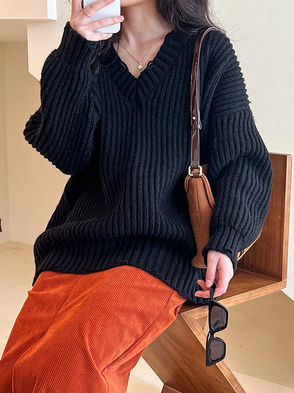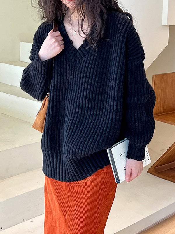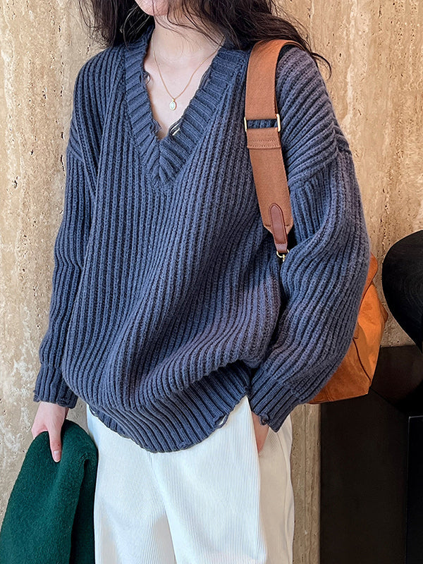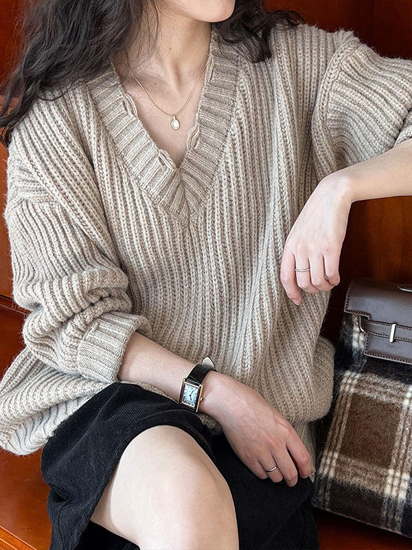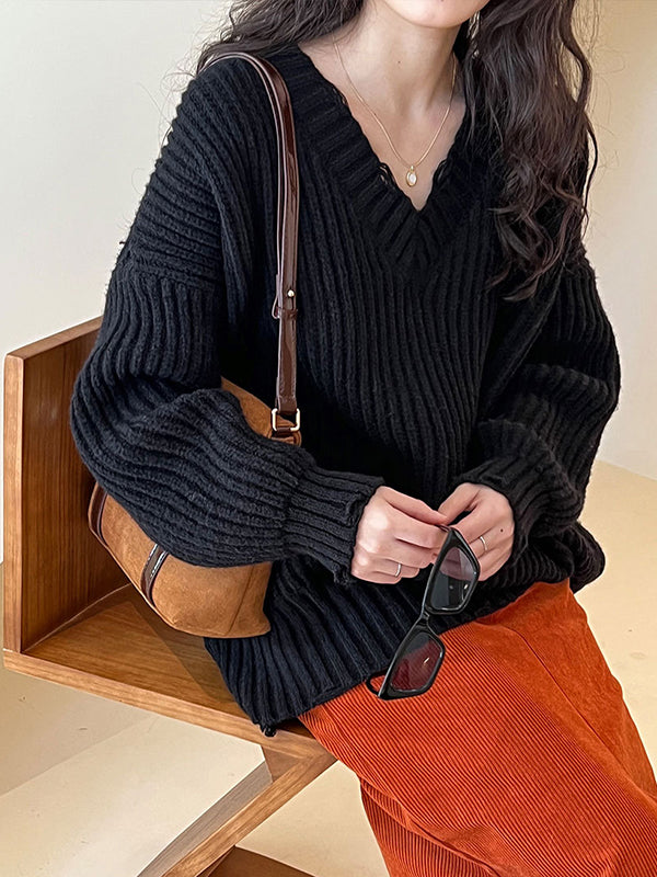 Pull en tricot à manches longues et col en V Urban Fuchsia AN1046
