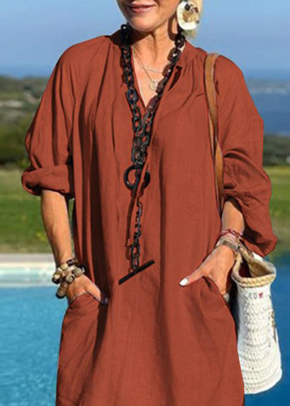 Organic Light Blue V Neck Patchwork Pockets Vacation Mid Dresses Fall