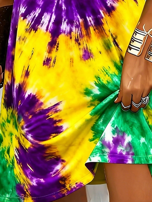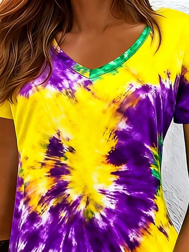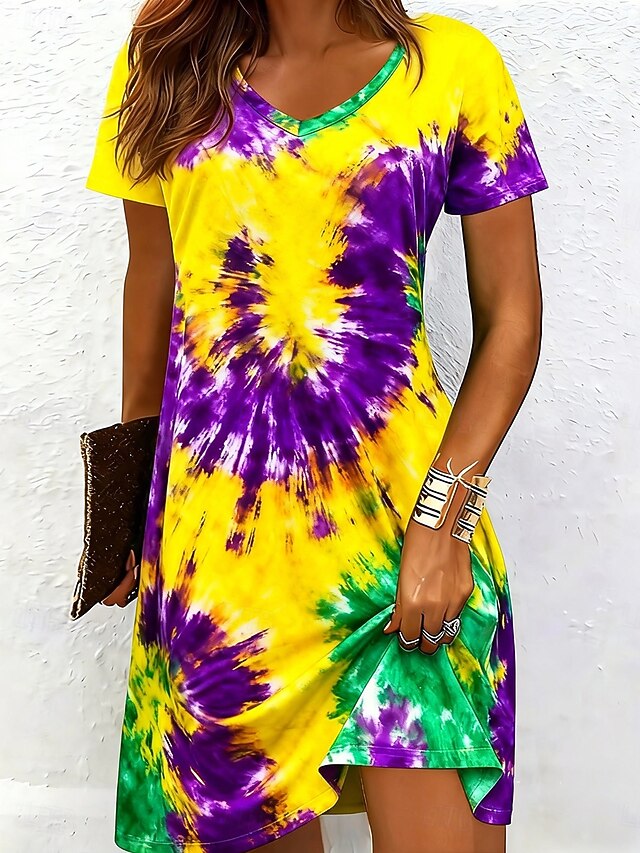 Dresses Type: Casual Dress, T Shirt Dress Tee Dress, Fabric: Polyester, Gender: Women's, Design: Print, Occasion: Weekend, Vacation, Daily, Outdoor, Style: Fashion, Modern, Fit Type: Regular Fit, Dress Length Type: Mini Dress, Neckline: V Neck, Sleeve Length: Short Sleeve, Elasticity: Micro-elastic, Look After Me: Hand wash, Machine wash, Pattern: Graphic, Tie Dye, Season: Summer, Spring,