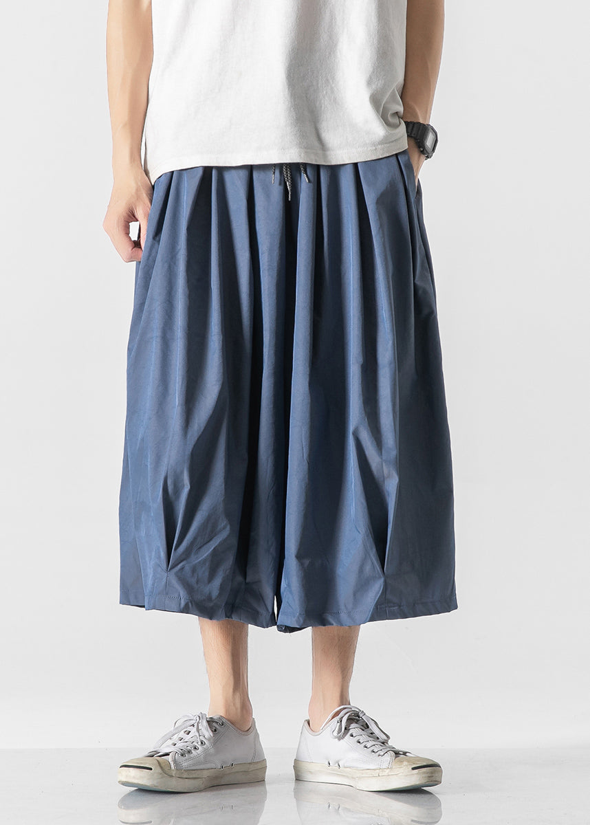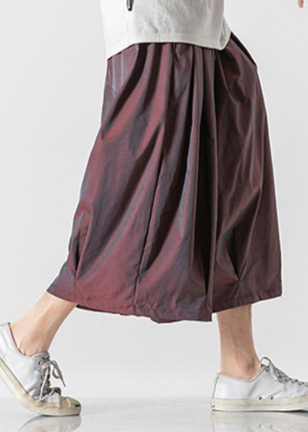 Ce pantalon lanterne pour homme à taille élastique présente une couleur rouge foncé vintage et des poches pratiques.