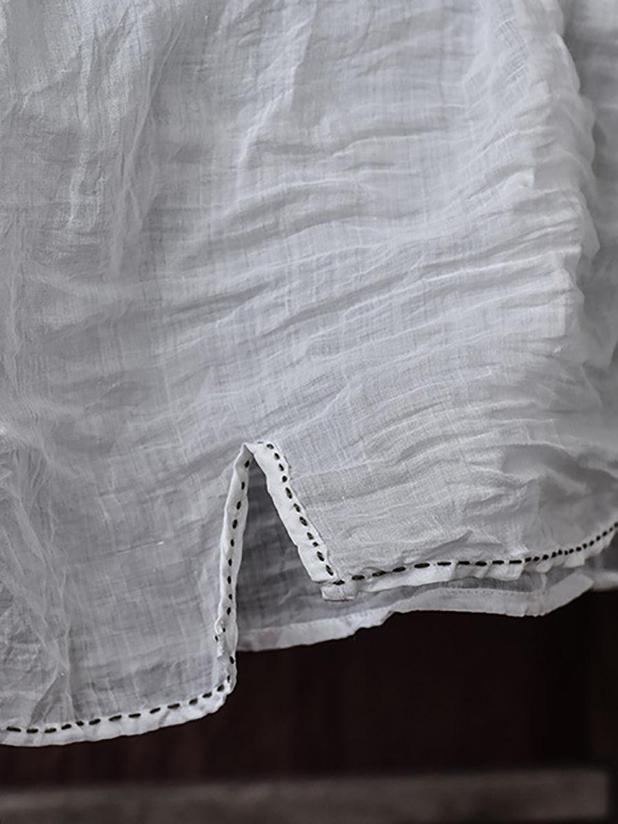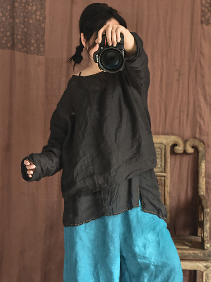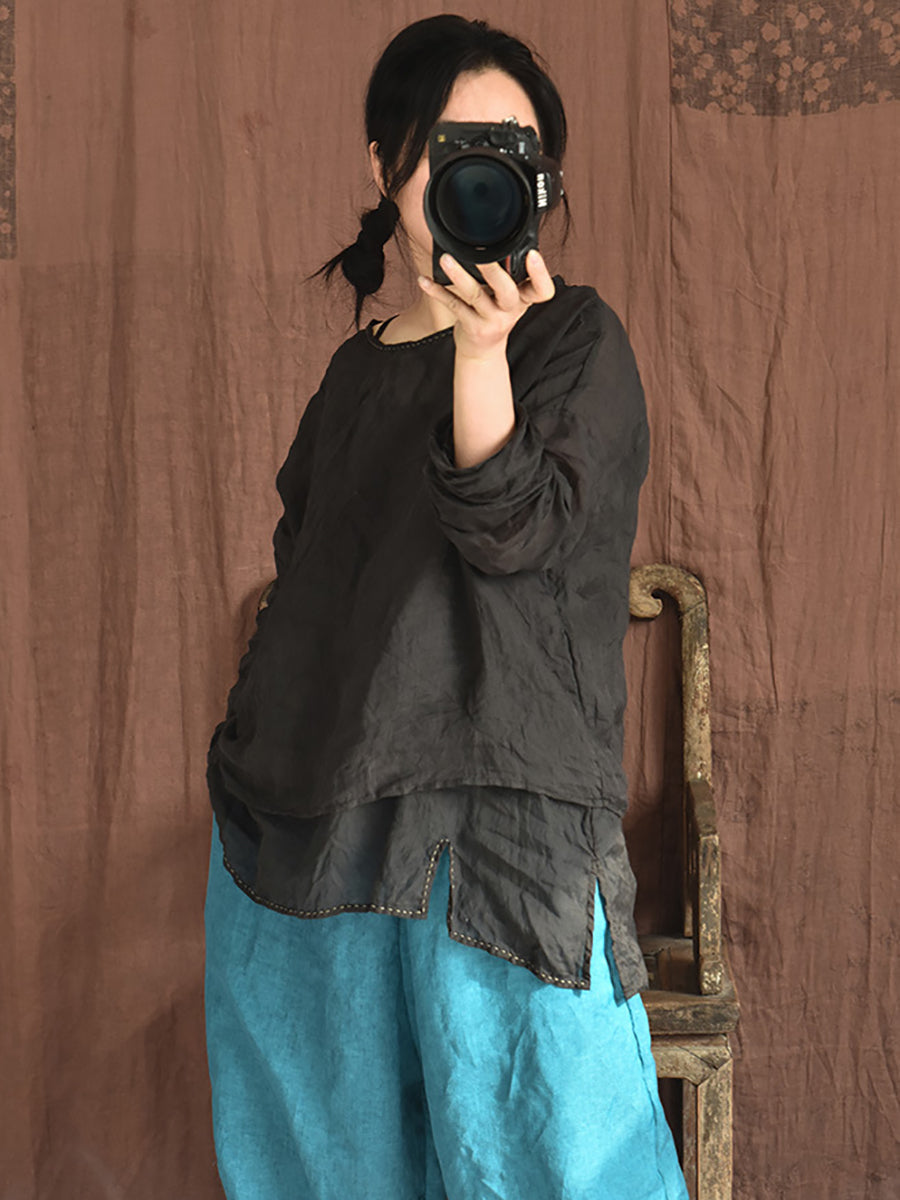 Gilet ample décontracté en ramie pour femme avec ourlet fendu et coutures LL023