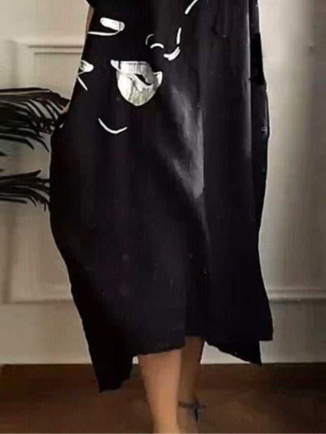 Dresses Type: Faux Cotton Linen, Casual Dress, Fabric: Polyester, Linen texture style, Gender: Women's, Occasion: Daily, Vacation, Design: Print, Pocket, Style: Casual, Stylish, Fit Type: Regular Fit, Dress Length Type: Maxi Dress, Neckline: Hooded, Sleeve Length: Half Sleeve, Elasticity: Micro-elastic, Look After Me: Hand wash, Machine wash, Pattern: Graphic, Season: Summer,