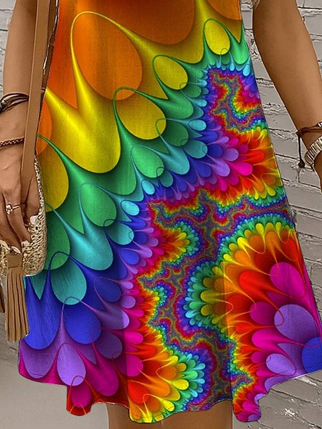 Dresses Type: Off The Shoulder Dress, A Line Dress, Fabric: 95%Polyester 5% Spandex, Gender: Women's, Design: Print, Style: Vacation, Casual, Fit Type: Regular Fit, Dress Length Type: Mini Dress, Neckline: U Neck, Sleeve Length: Sleeveless, Elasticity: Inelastic, Look After Me: Machine wash, Dress Length: Mini, Pattern: Graphic, Abstract, Ombre, Season: Spring, Summer,
