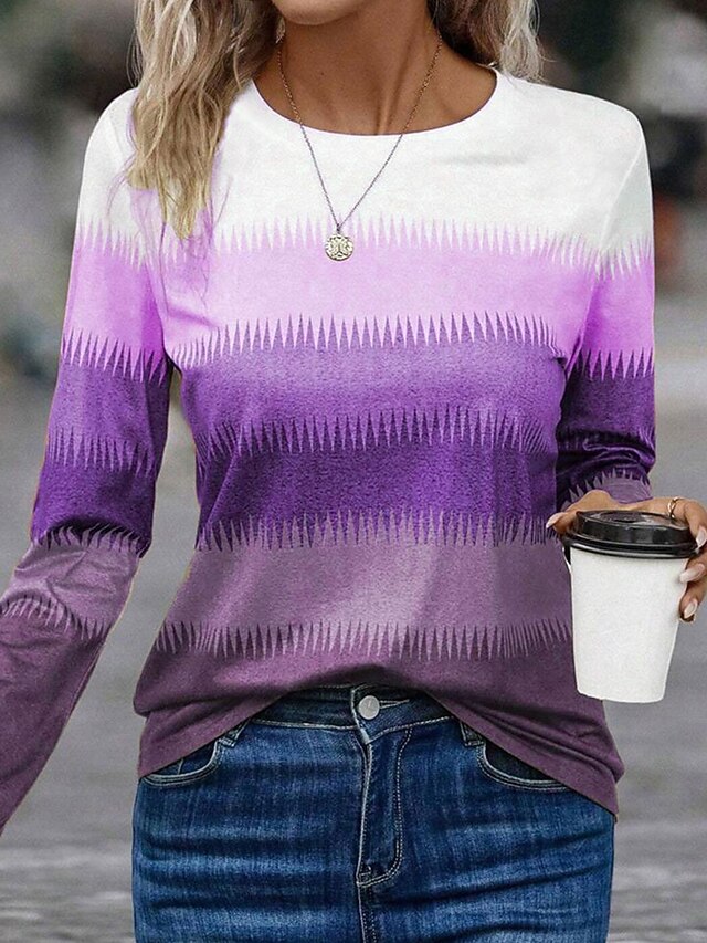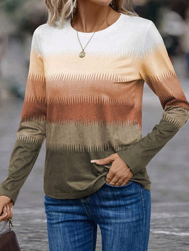 Tops Type: T Shirt, Fabric: Polyester, Gender: Women's, Design: Print, Occasion: Daily, Style: Stylish, Trendy, Casual, Vintage, Classic, Category: T-Shirt, Fit Type: Regular Fit, Neckline: Crew Neck, Sleeve Length: Long Sleeve, Elasticity: Micro-elastic, Look After Me: Washable, Hand wash, Machine wash, Top Length: Regular Tops, Pattern: Graphic, Geometric, Season: Spring, Winter, Fall,