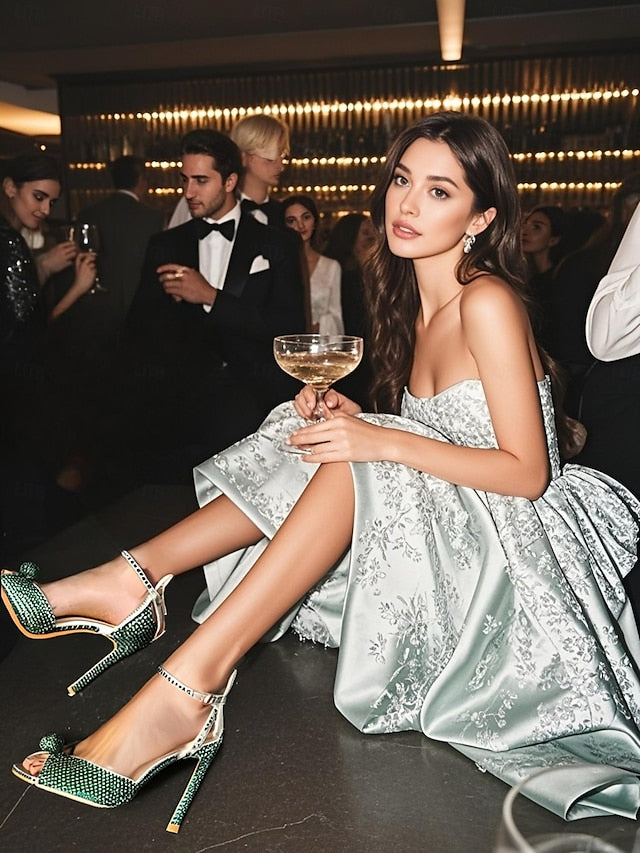 Women's Rhinestone Embellished Stiletto Heel Sandals with