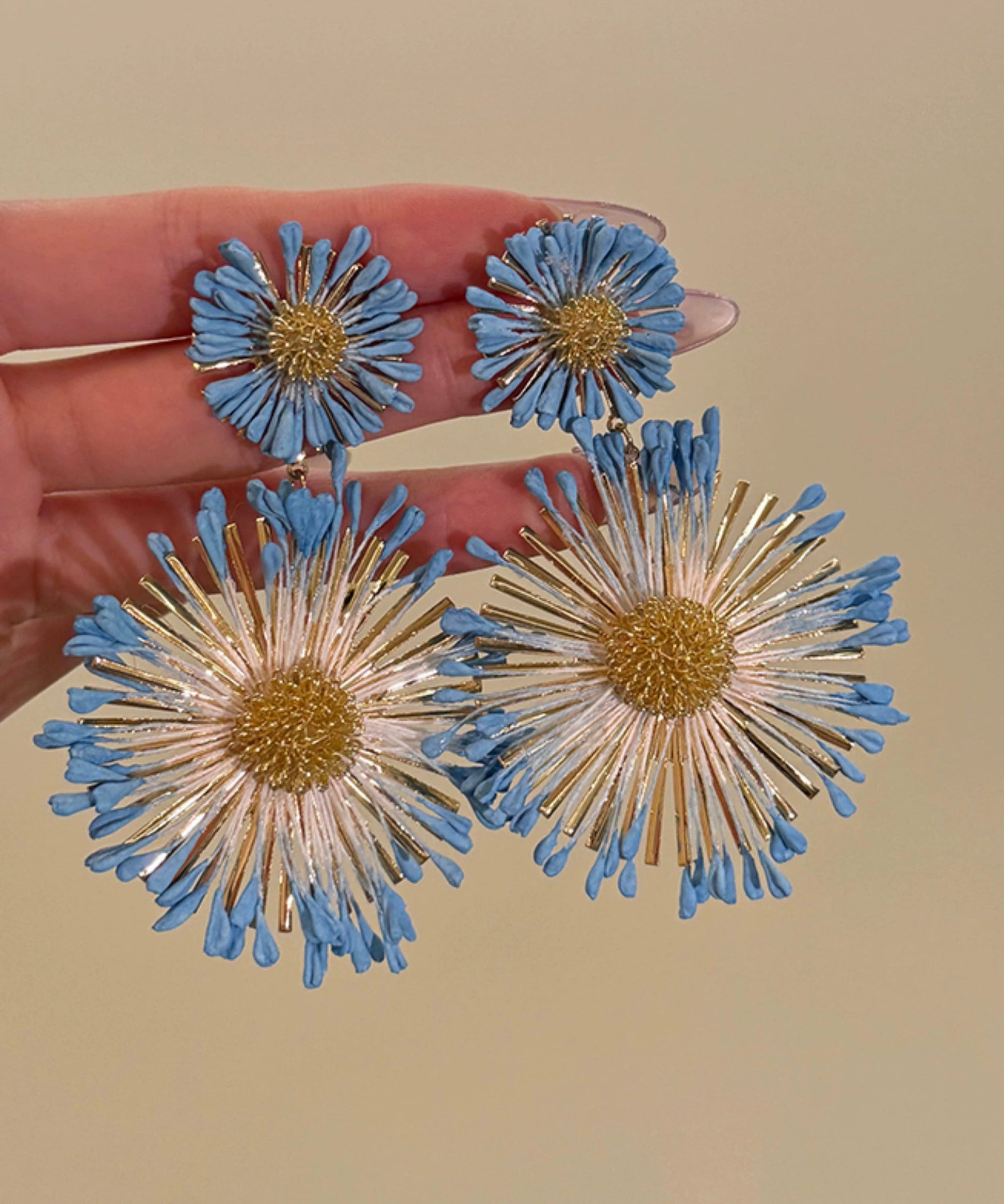 Casual Blue Alloy Sunflower Drop Earrings