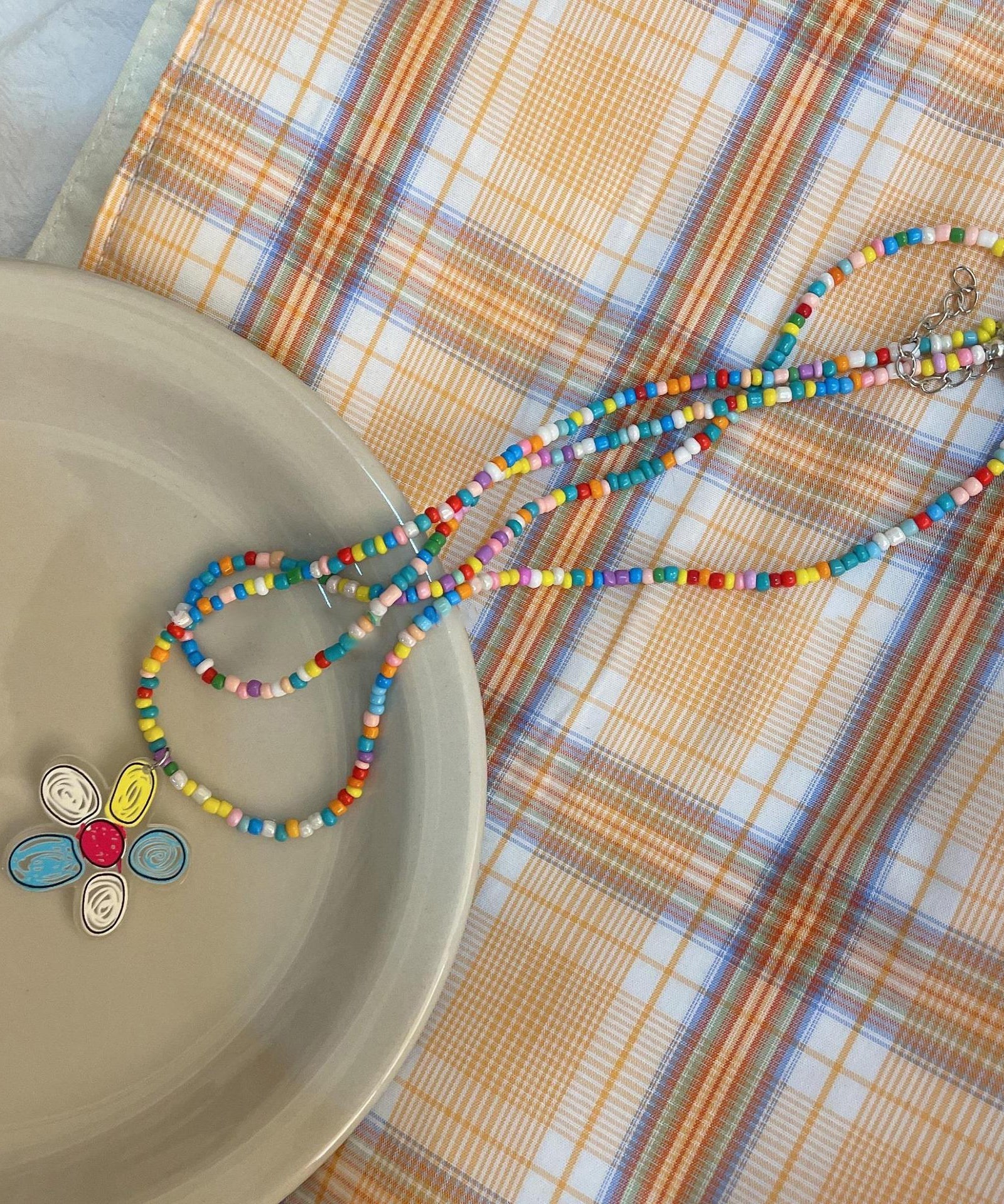Beautiful Rainbow Floral Alloy Floral Double Layer Beading Pendant Necklace