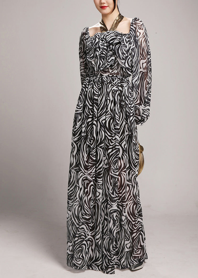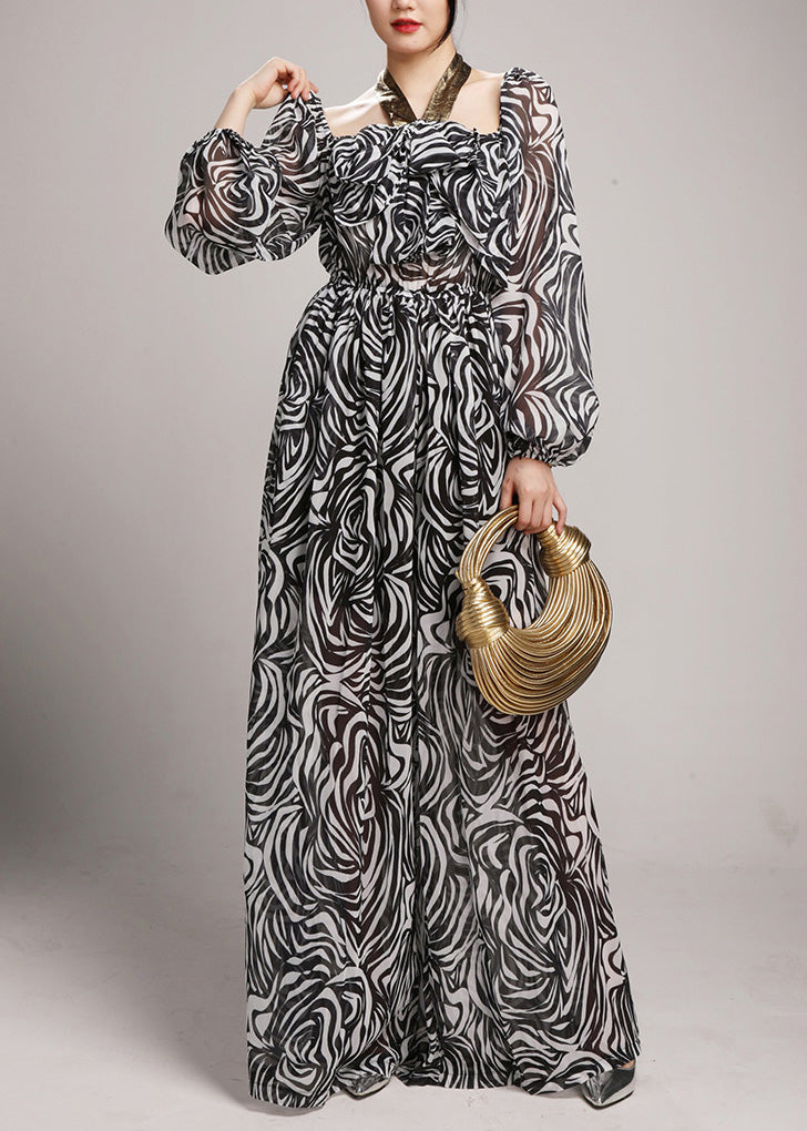 Black Square Collar Tie Lace Chiffon Jumpsuits Fall AY1049
