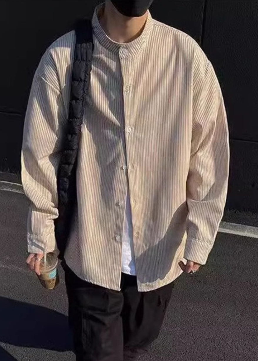 Boutique Black Shirts Spring Striped Button Men's Cotton