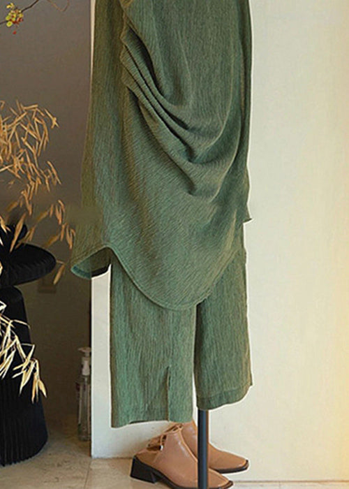 Button Cotton Set Sleeveless Asymmetrical Two Pieces Women Green
