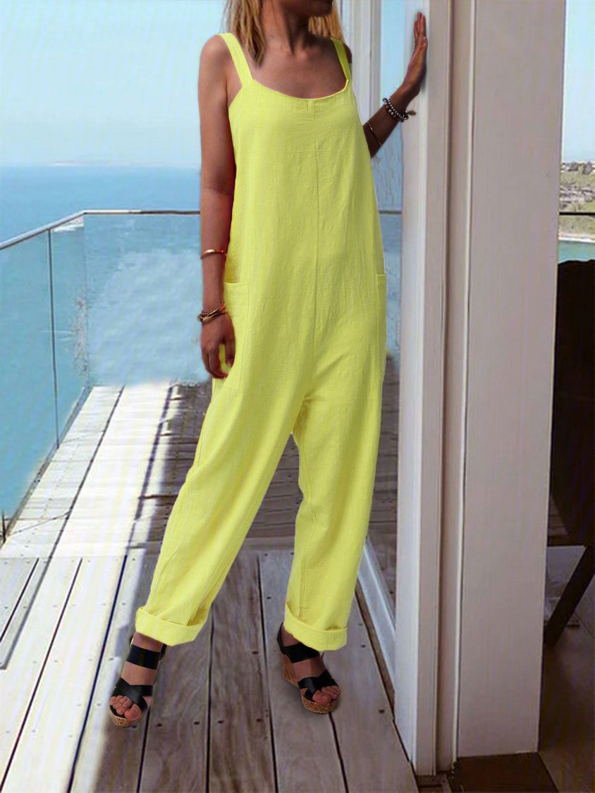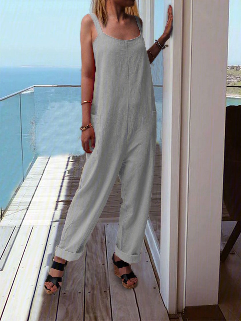 Casual Sleeveless Plus Size Jumpsuits With Pockets CM89