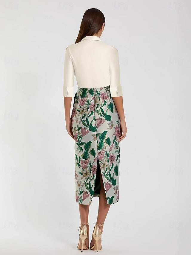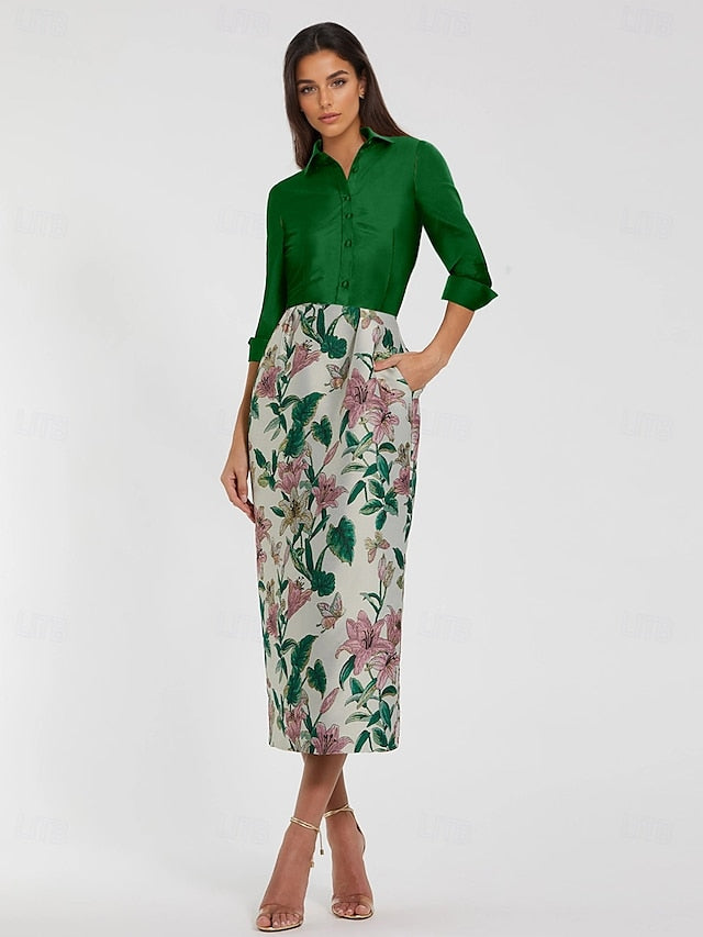Occasion: Wedding Guest, Formal, Wedding, Style: Elegant, Mother Of The Bride, Silhouette: Sheath / Column, Hemline / Train: Ankle Length, Neckline: Shirt Collar, Fabric: Nylon, Closure: Zipper UP, Sleeve Length: Long Sleeve, Embellishment: Floral Print, Built-In Bra: No, Boning: No, Tips: Professional dry cleaner only, Colors may vary slightly due to different monitor settings,