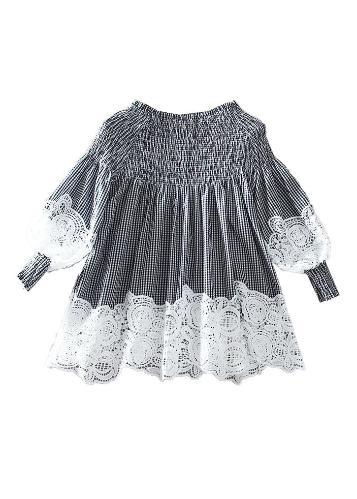 French White O-Neck Wrinkled Patchwork Hollow Out Shirt Long Sleeve NN036