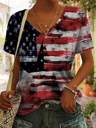 Product Title :V Neck Loose Casual Geometric T-Shirt