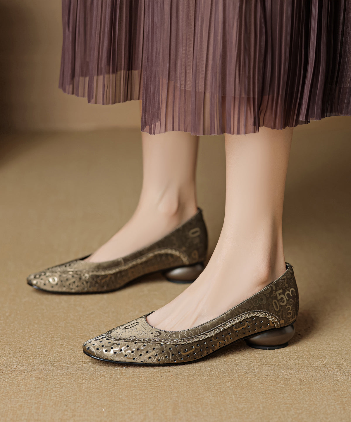 Vintage Splicing Chunky Shoes Green Cowhide Leather Breathable