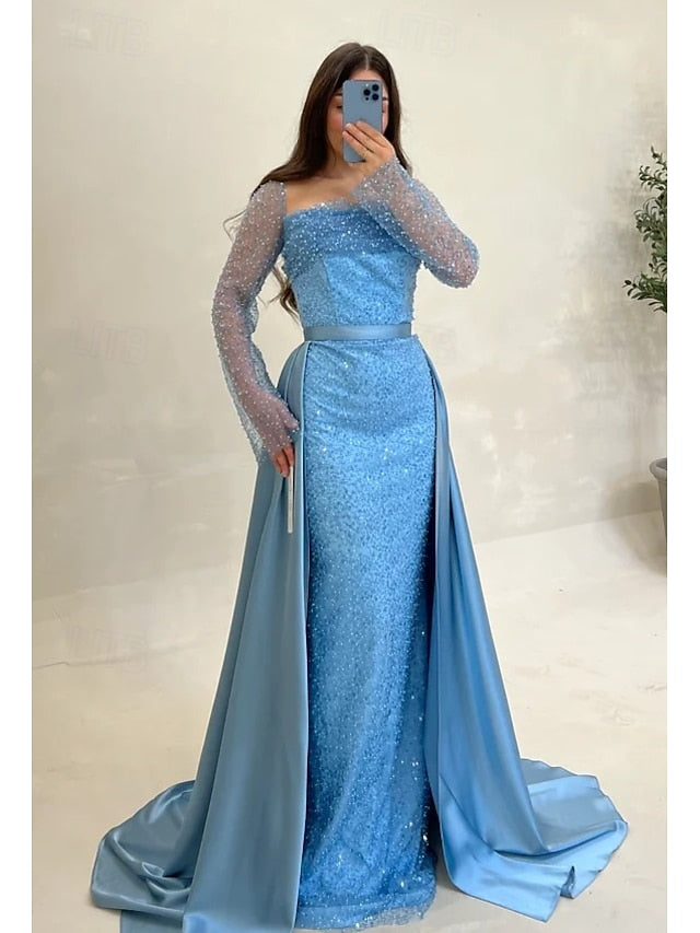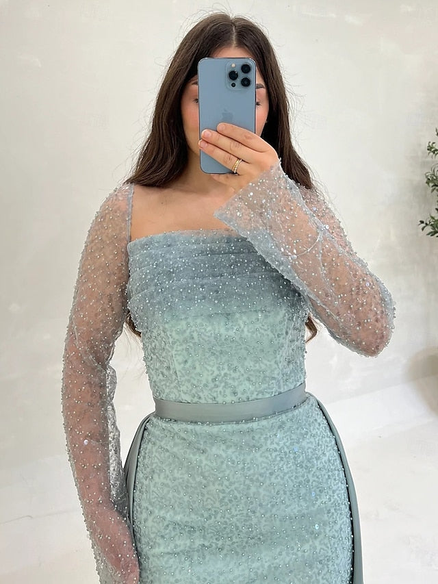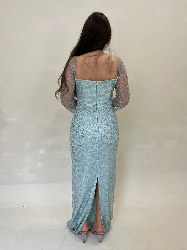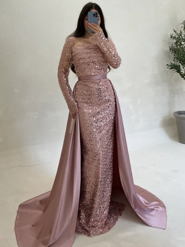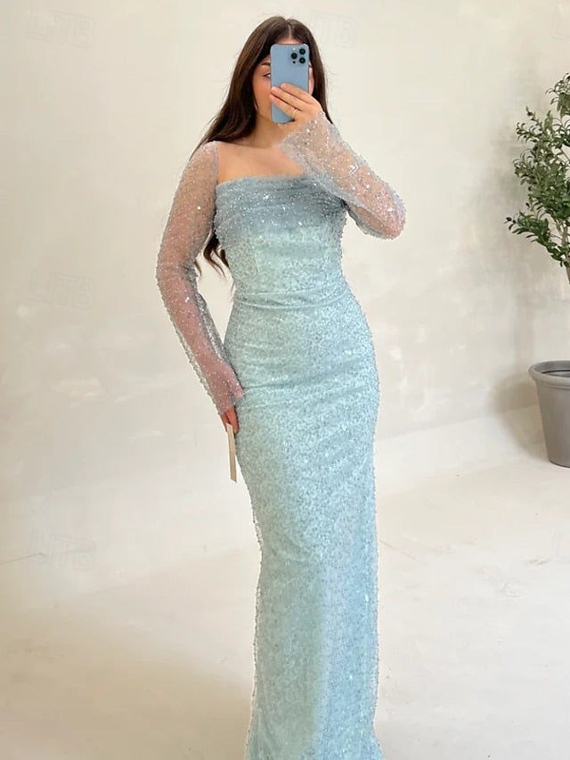 Sequin A-Line Evening Gown Elegant Dress Formal Wedding Guest