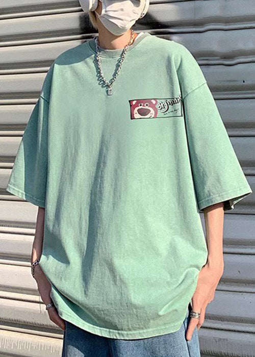 Art Pink Cartoon Print Cotton Men T Shirts Half Sleeve