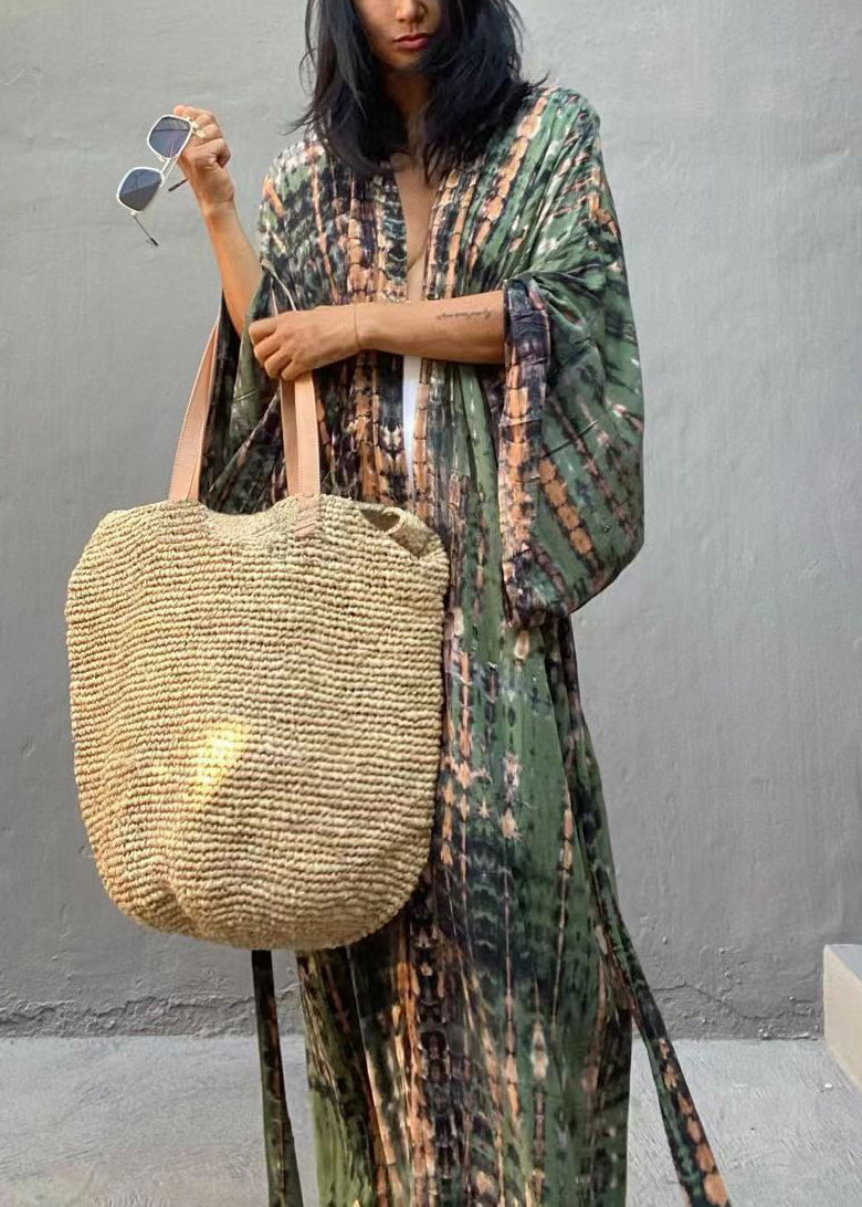 Handmade Green V Neck Striped Holiday Long Smock Spring GH1039