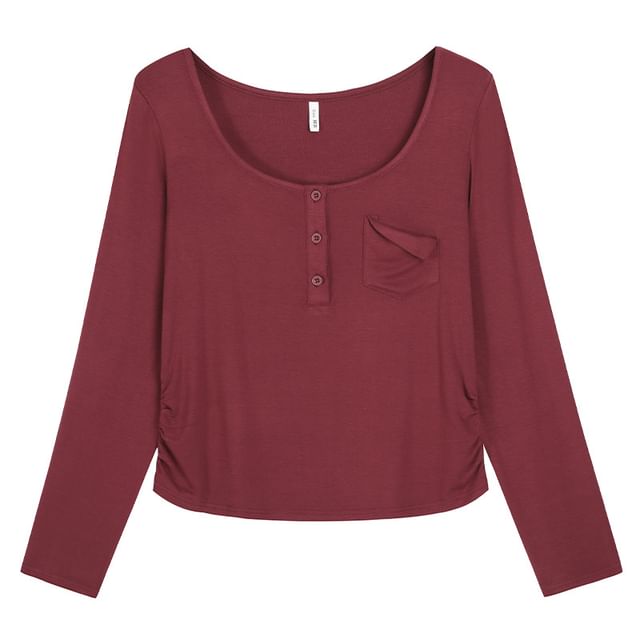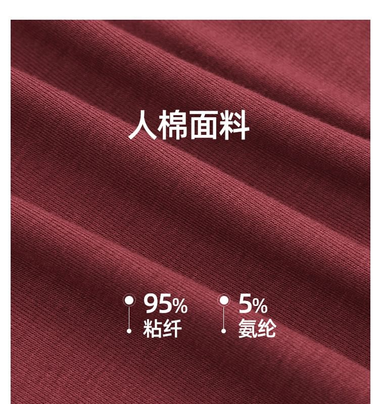 Long-Sleeve Henley Plain T-Shirt / Halter Plain Midi A-Line Dress