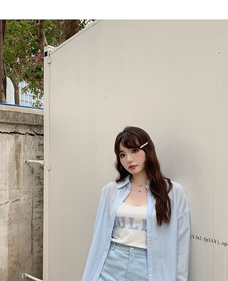 Long-Sleeve Plain Shirt / Mini Skirt / Lettering Camisole Top / Set