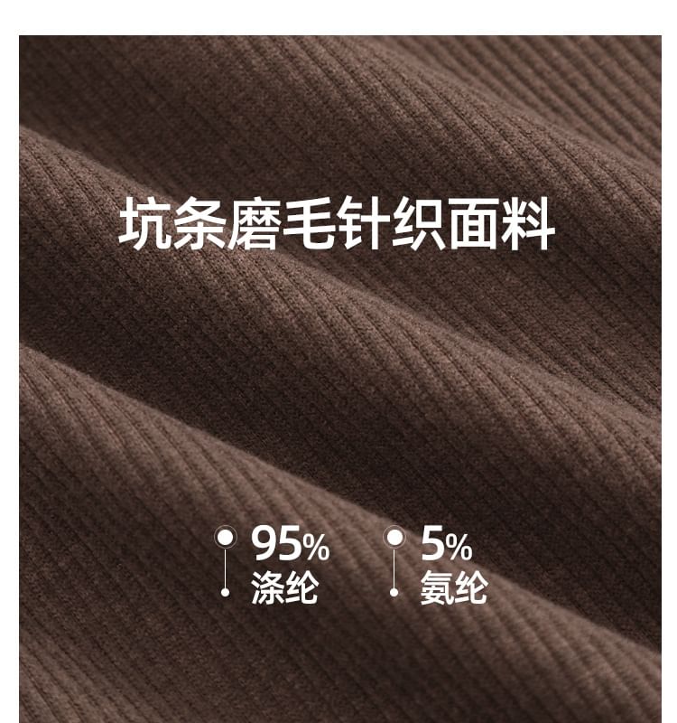 Long-Sleeve Polo-Neck Plain Lace-Up Midi A-Line Dress