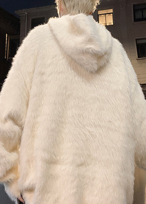 Loose Black Hooded Letter Mink Velvet Men Sweaters Winter RC038