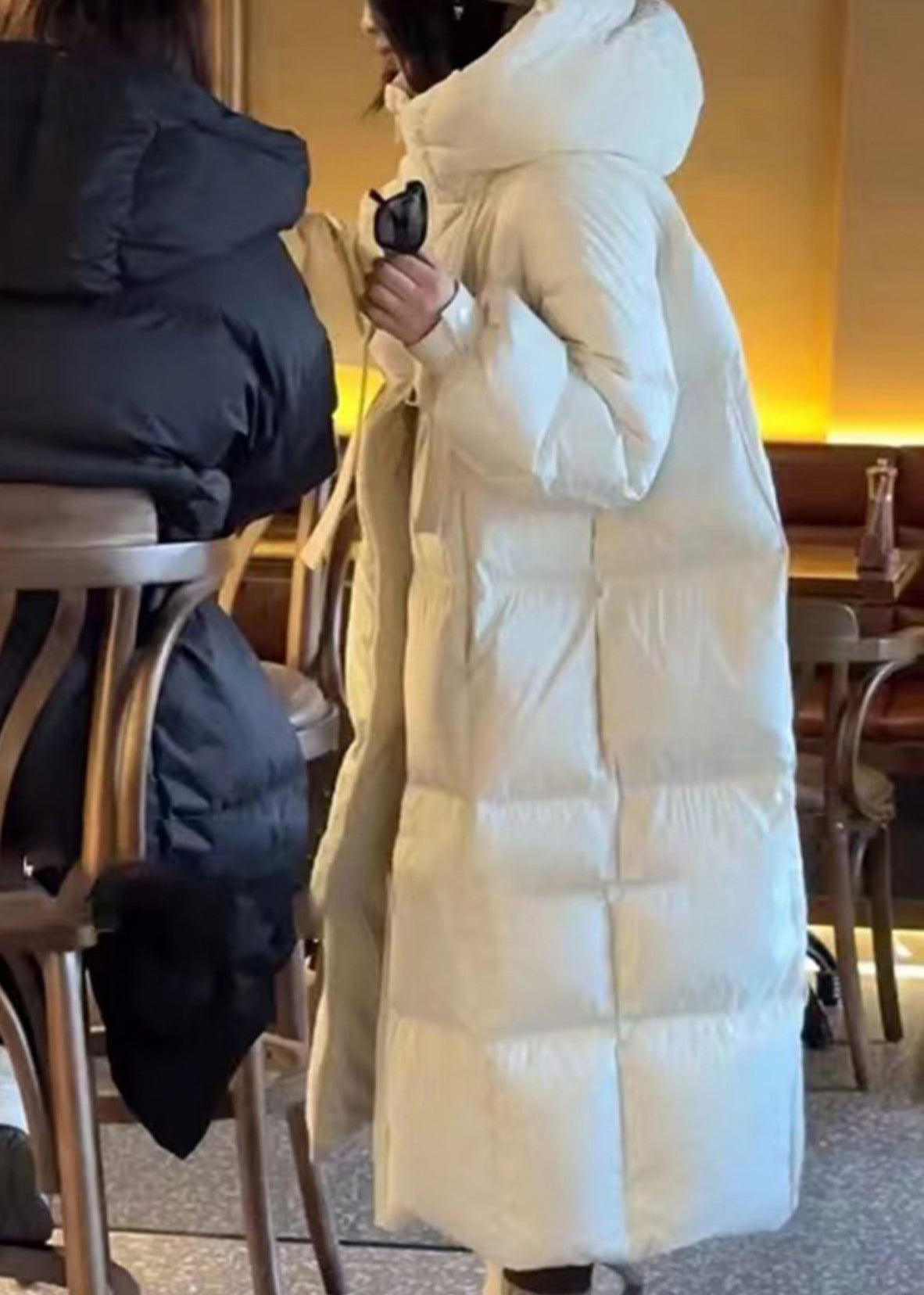 Loose Black Pockets Patchwork Zippered Hooded Maxi Parka Winter RD012