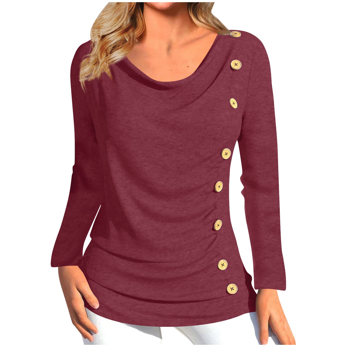 Product Title :Loose Ruched Buttoned Casual T-Shirt WZ96