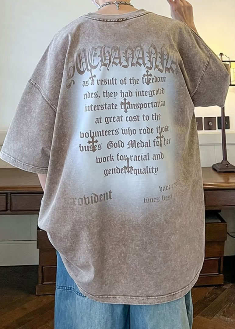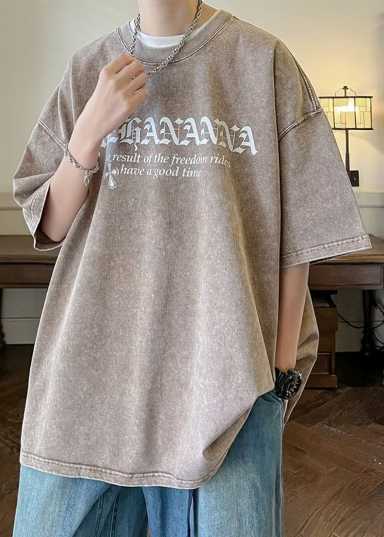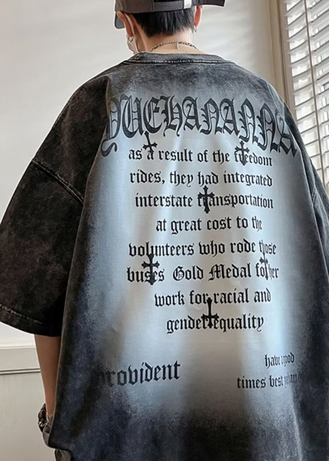 Vintage Black Letter Cotton Men's T Shirts O Neck Half Sleeve