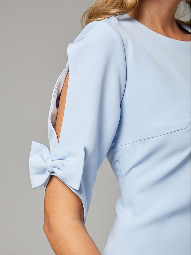 Occasion: Wedding Guest, Wedding Party, Style: Elegant, Simple, Silhouette: Sheath / Column, Hemline / Train: Short / Mini, Neckline: Jewel Neck, Fabric: Chiffon, Closure: Zipper UP, Sleeve Length: Short Sleeve, Waistline: Natural, Embellishment: Solid Color, Bow(s), Fully Lined: No, Built-In Bra: Yes, Boning: Yes, Tips: Professional dry cleaner only, Colors may vary slightly due to different monitor settings,