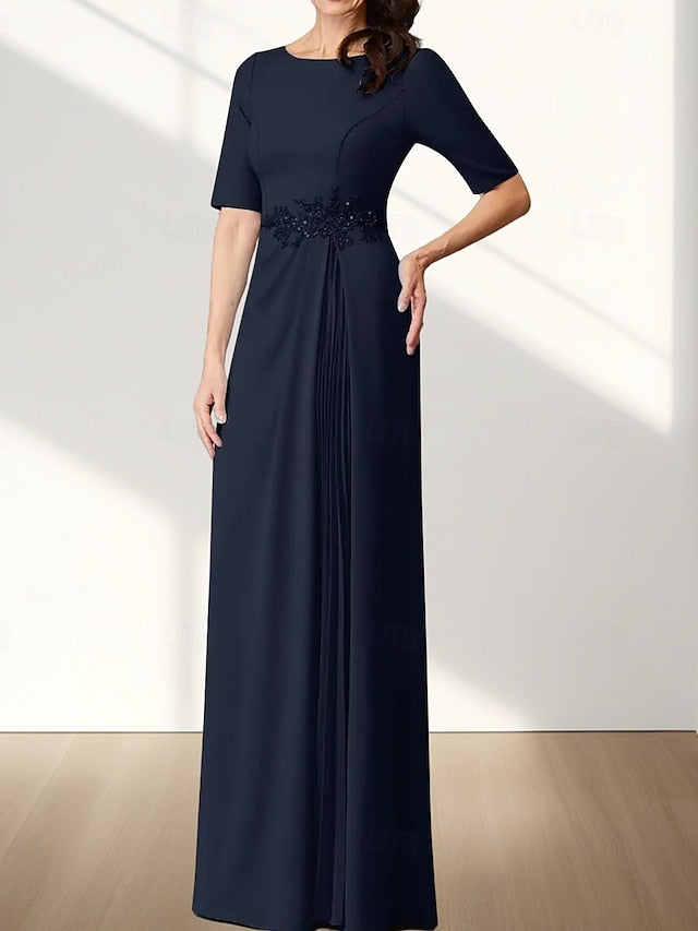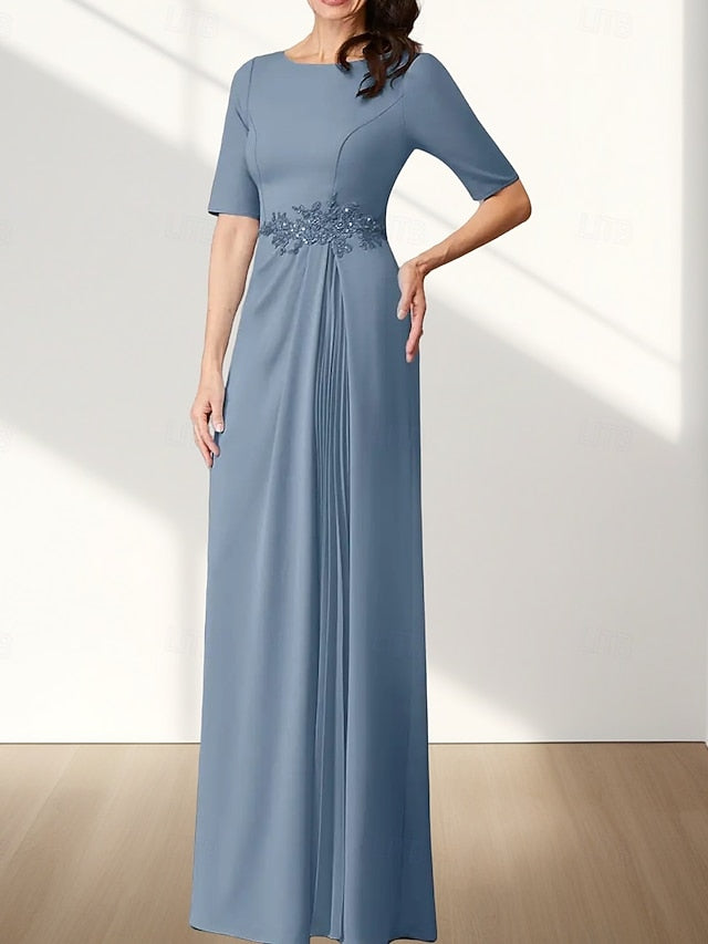 A-Line Mother of the Bride Dress Wedding Guest Elegant Crew Neck