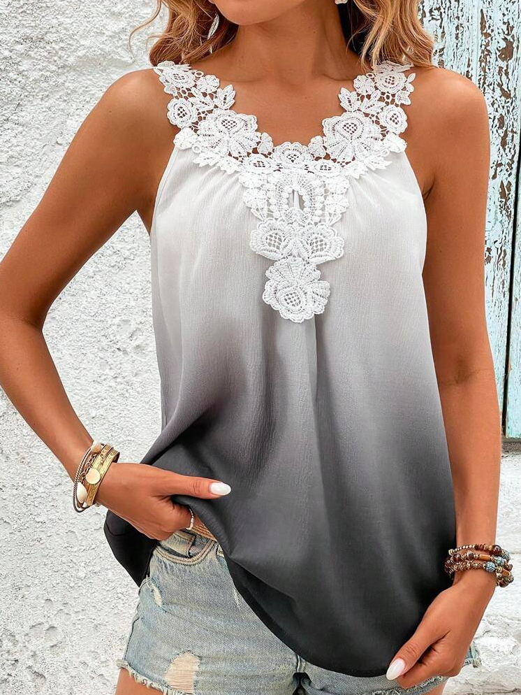Product Title :Loose Ombre Elegant Ombre Contrast Guipure Lace Wide Strap Tank Top