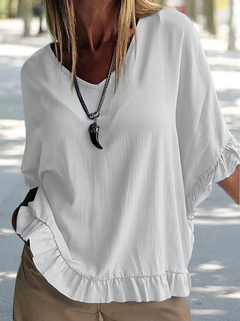 V Neck Loose Cotton And Linen Linen Shirt AA13