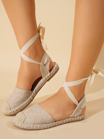 Product Title: | Apricot Linen Strappy Ankle Strap Sandals QAF11 |
