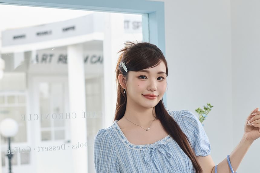 Plus Size Short-Sleeve Square Neck Plaid Tie Front Top