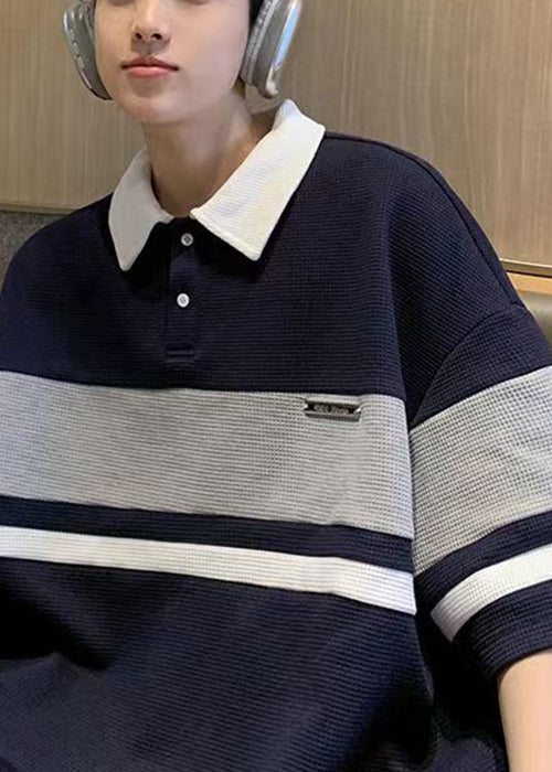 Loose Grey Button Patchwork Cotton Mens Mens Polo Shirts Summer