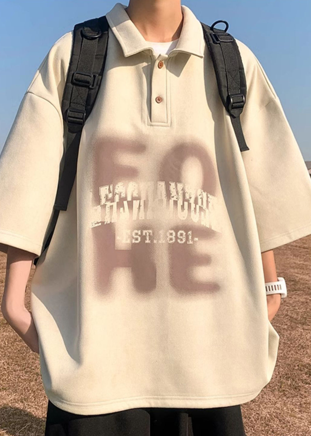 Polo Men Half Apricot Print French Cotton Sleeve Shirts Oversized