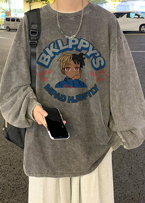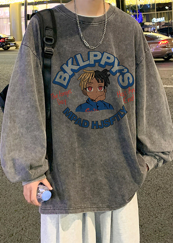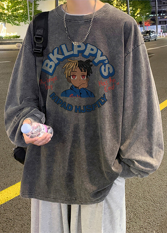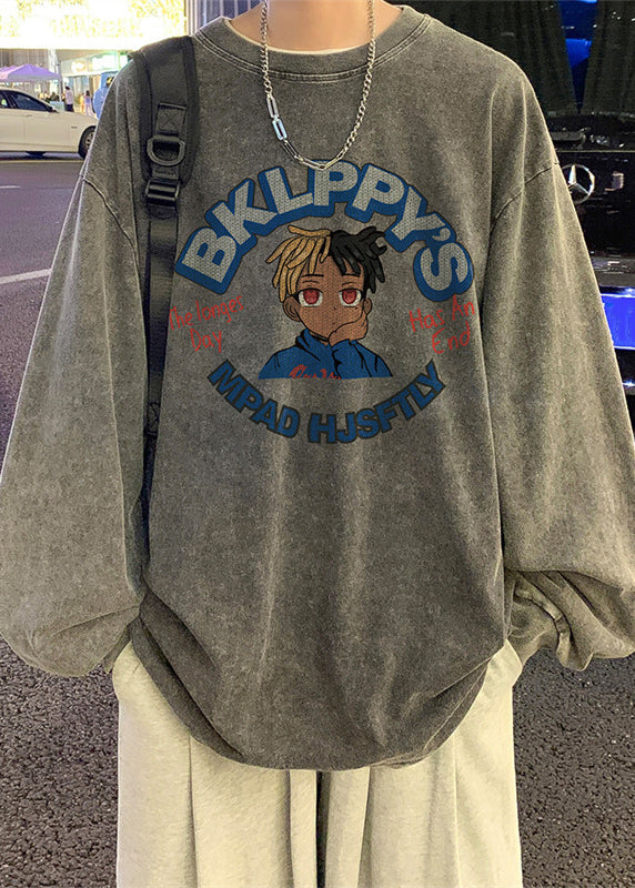 Print Neck Spring Black Vintage O Men Cotton T Shirt