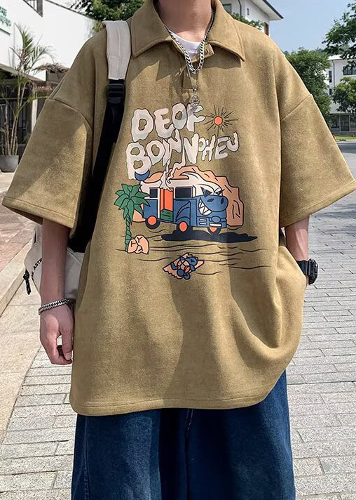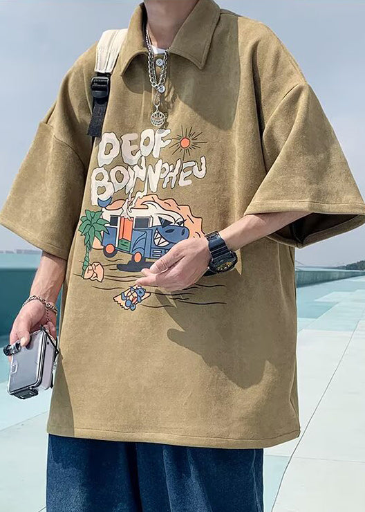 Print Shirts Vintage Summer Green Button Polo Cotton Mens