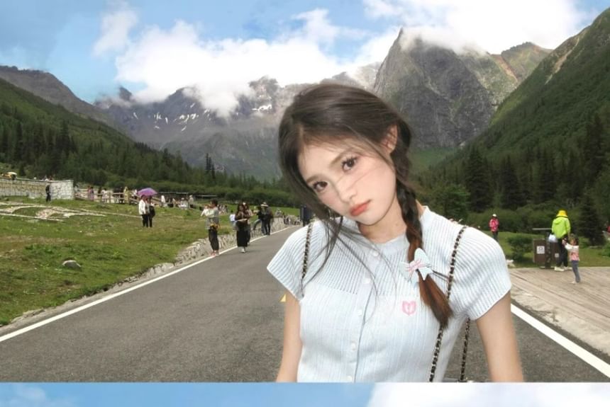 Short-Sleeve Logo Embroidered Striped Tee / High Rise Midi A-Line Skirt / Set