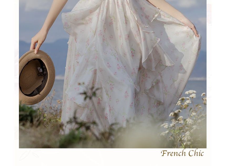 Short-Sleeve Square Neck Floral Maxi A-Line Dress