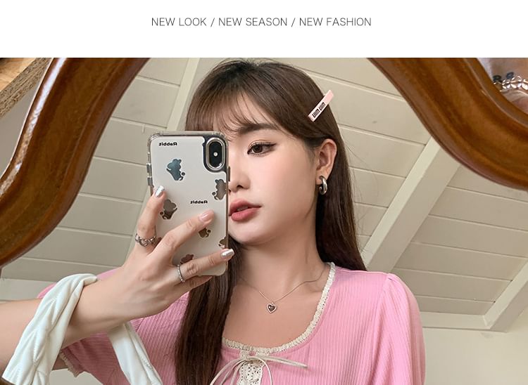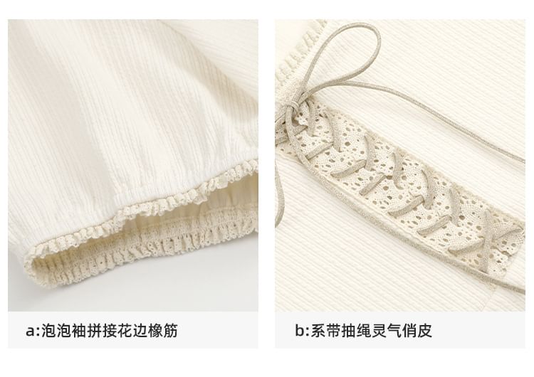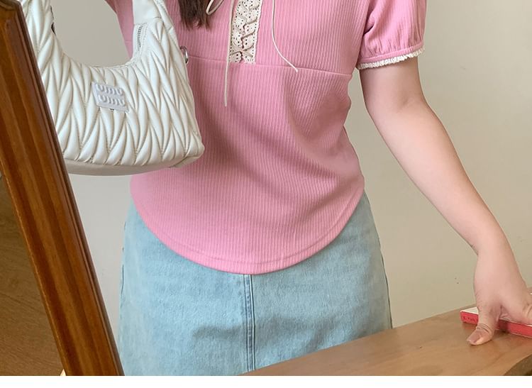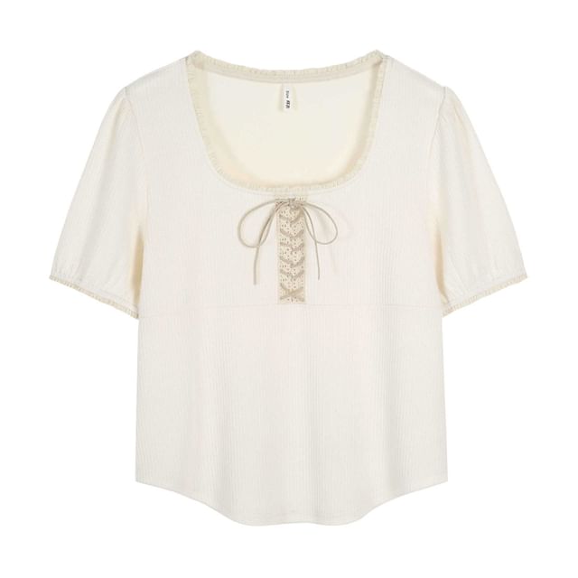 Short-Sleeve Square Neck Lace-Up Slim Fit Tee
