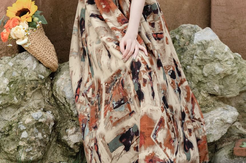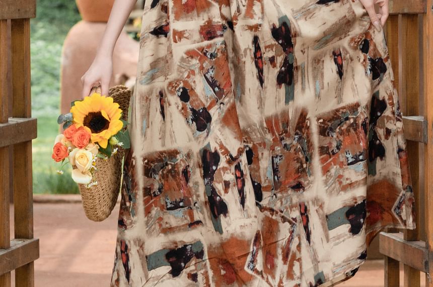 Spaghetti Strap Patterned Maxi Sundress / Crochet Knit Cardigan / Set