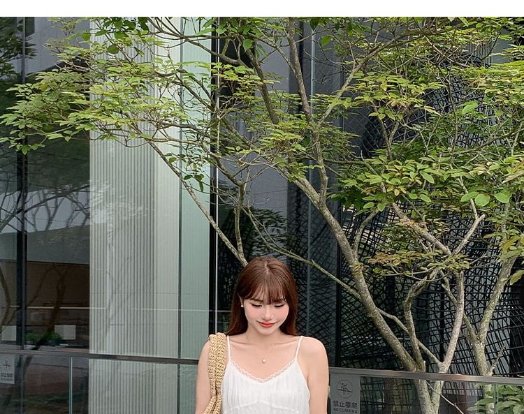 Spaghetti Strap Plain Tiered Midi A-Line Dress