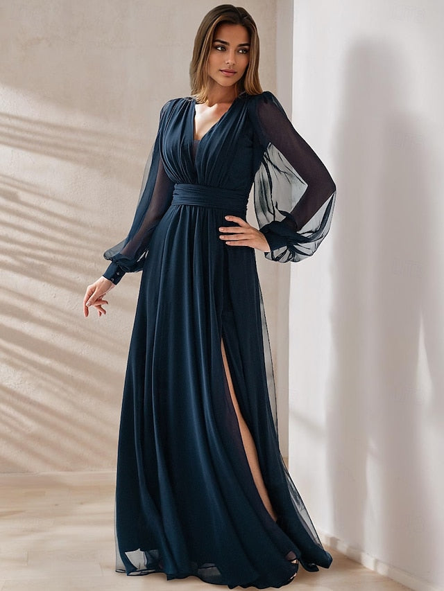 A-Line Mother of the Bride Elegant Party V Neck Floor Length