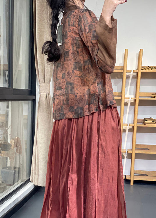 Crafted with an exquisite blend of ramie and linen, this long-sleeved top features a vintage blue print, Chinese button closures, and a stand collar. Perfect for adding a touch of traditional charm to your wardrobe.