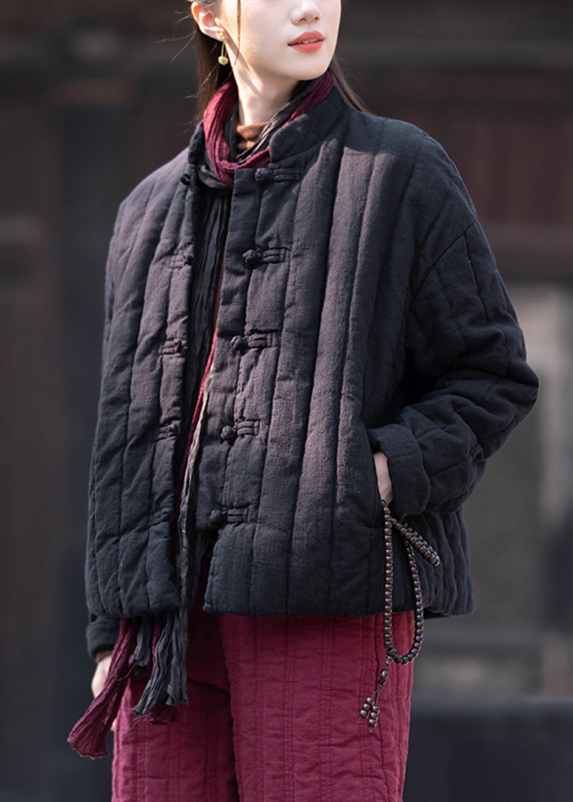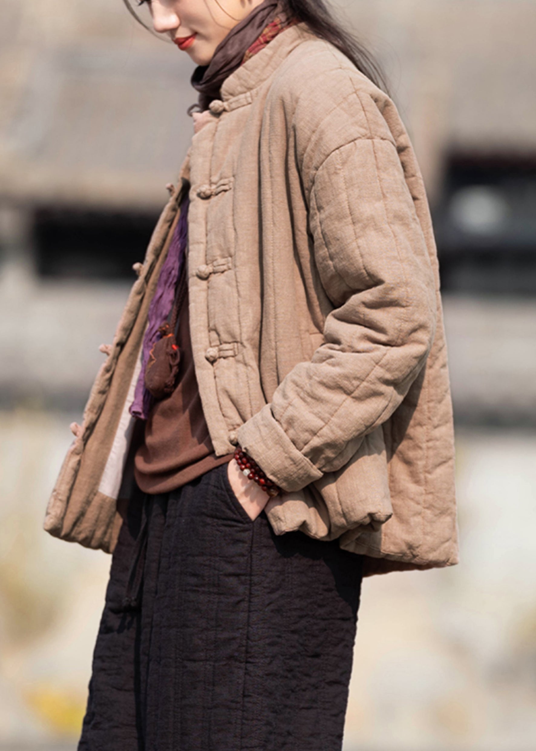 Vintage Khaki Stand Collar Button Pockets Cotton Filled Parkas Winter QO061