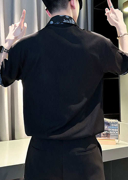 White Cotton Button Print Slim Shirts Patchwork Men Polo Fit