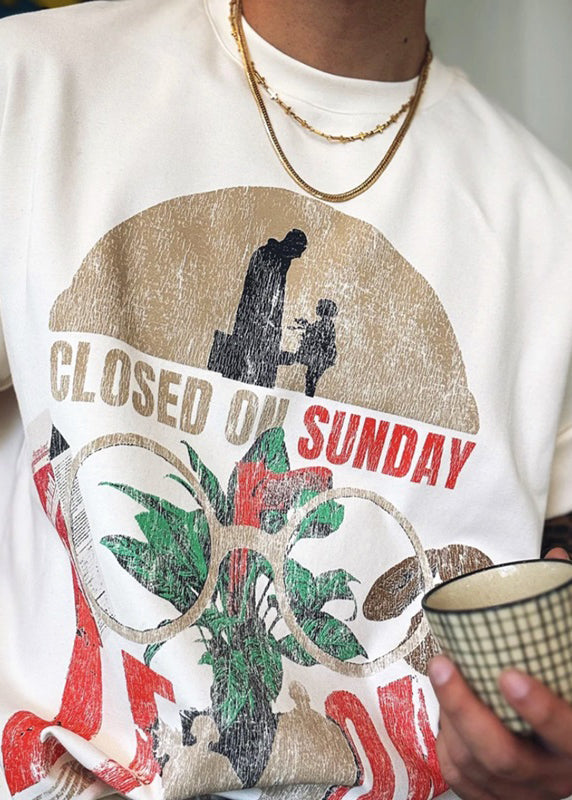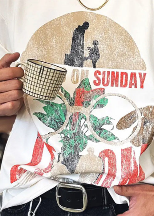 White T O Letter Neck Summer Shirts Cotton Print Modern